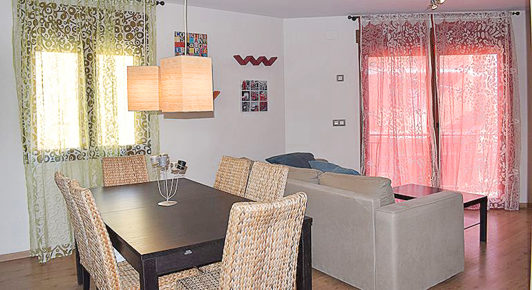 Dispone de televisión y tiene una gran luminosidad. Los niñ@s pueden gozar de su espacio como zona de juego. Suelo de parquet excepto la cocina y el baño que tienen gres. Aire acondicionado y calefacción con termostato.
