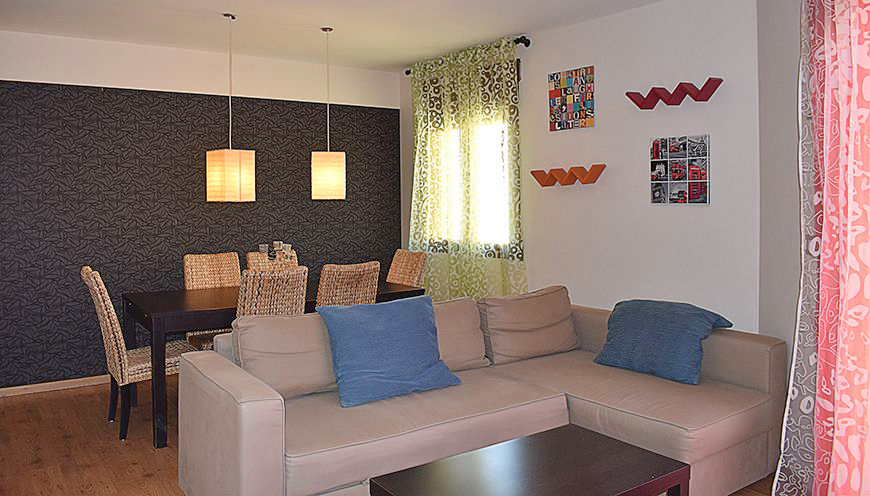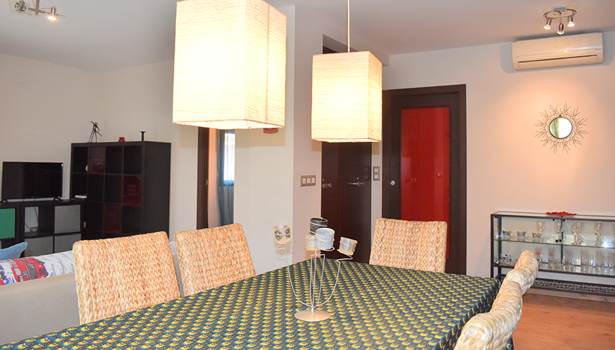 En Apartamento Denia te encontrarás como en casa. Dispone de cocina totalmente equipada, salón comedor, dos dormitorios, uno de ellos con cama de matrimonio y el otro con dos camas, baño completo y dos terrazas.